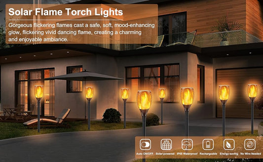 Solar Torch Lights with Flickering Flame, Fire Effect Garden Light, Auto On/Off Dust to Dawn, Outdoor Waterproof Landscape Decoration, Powered Security Light for Patio