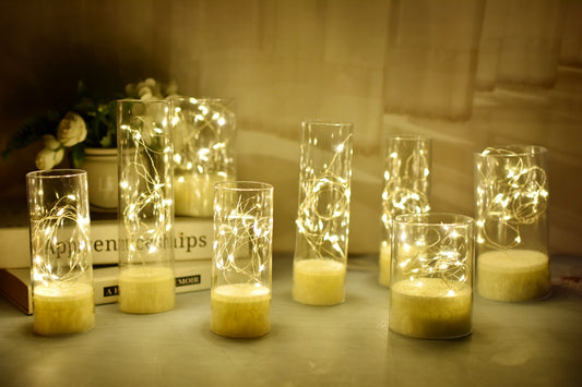 LED Flickering Remote Control String Lights Unscented Pillar Candle Set