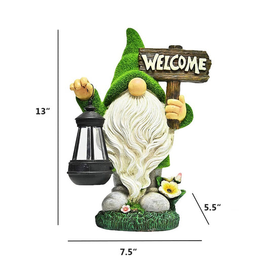 Solar Gnome with Leaf Hat Garden Statue, 7.5 by 13 Inches